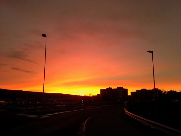 Vi behöver handla lite och har en liten kasse med prylar som hör hemma i Bosvedjan, så vi åker iväg till sta'n. Medan Sture handlar promenerar Tosca och jag från Skönsberg till Bydalen. En väldig massa intryck blir det; bussar, bilar, joggare, barnvagn, hundmöte, folk som promenerar... och en oändlig massa skräp som folk slängt och som matten inte tycker att Tosca ska äta upp... En fantastisk miljöträningspromenad för oss, som mest är i skogen annars.